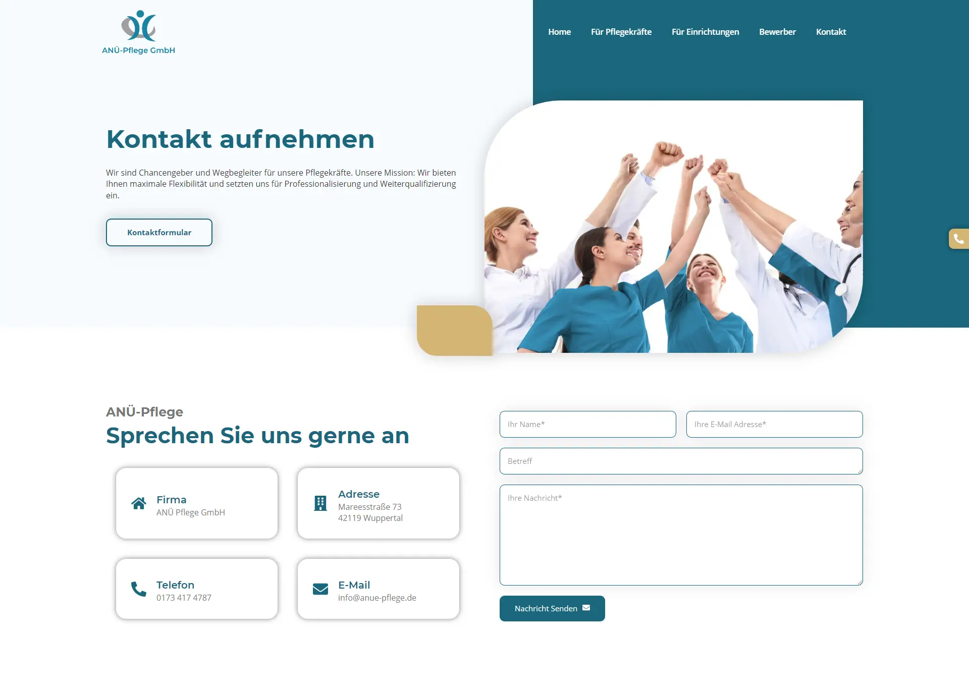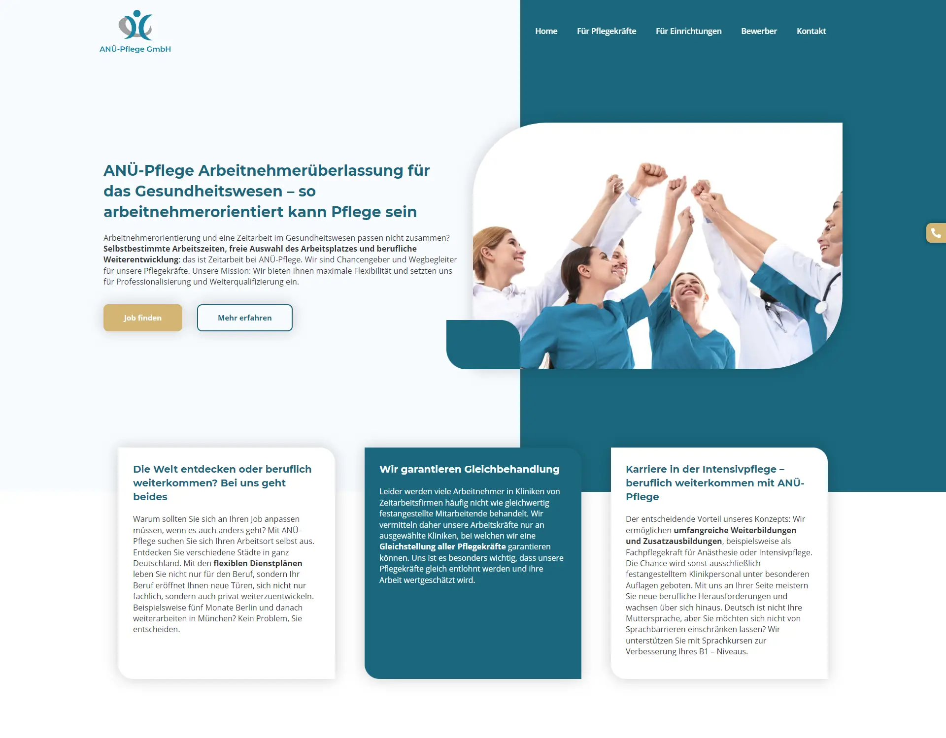 Die Webseite ist nicht nur ein Schaufenster für die Dienstleistungen von ANÜ-Pflege, sondern auch eine Informationsquelle für Patienten und deren Familien, die Unterstützung und professionelle Pflege suchen. Sie bietet detaillierte Informationen über die Pflegeoptionen, das Personal und die Philosophie des Unternehmens. Besonders hervorzuheben ist die mobile Optimierung der Seite, die es Besuchern ermöglicht, Informationen schnell und einfach auf jedem Gerät zu finden.