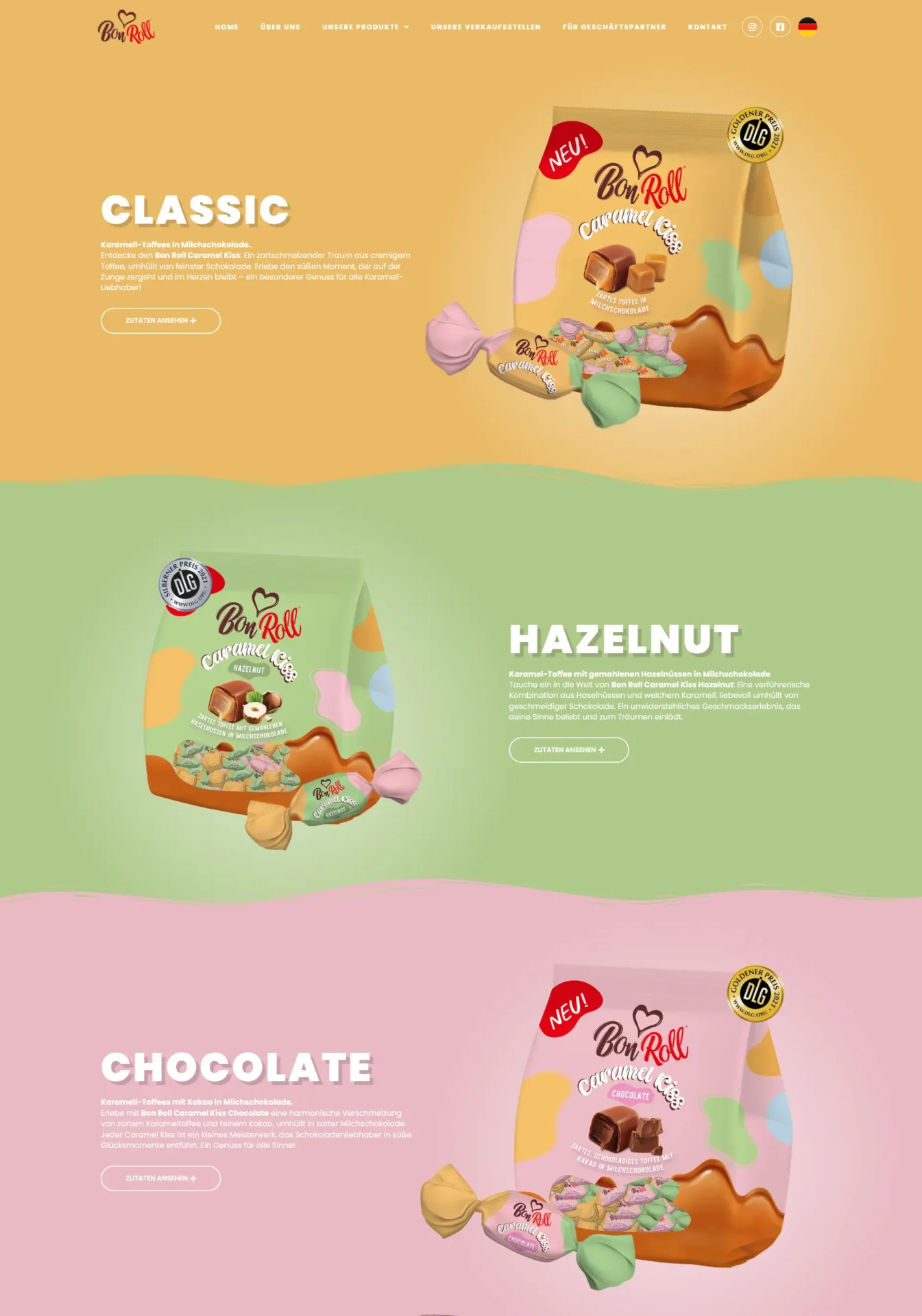 Bonroll, mit Hauptsitz auf Teneriffa, ist ein aufstrebendes Unternehmen, das sich auf die Herstellung und den Vertrieb von Süßwaren spezialisiert hat. Nachdem die Limitationen eines Webdesign-Baukastensystems deutlich wurden, entschied sich Bonroll dafür, ihre Online-Präsenz mit einer individuell gestalteten WordPress-Webseite zu erneuern. Das neue Design, umgesetzt mit WordPress und Elementor, ermöglicht es Bonroll, ihre vielfältigen und farbenfrohen Süßigkeitenprodukte effektiv und ansprechend zu präsentieren.