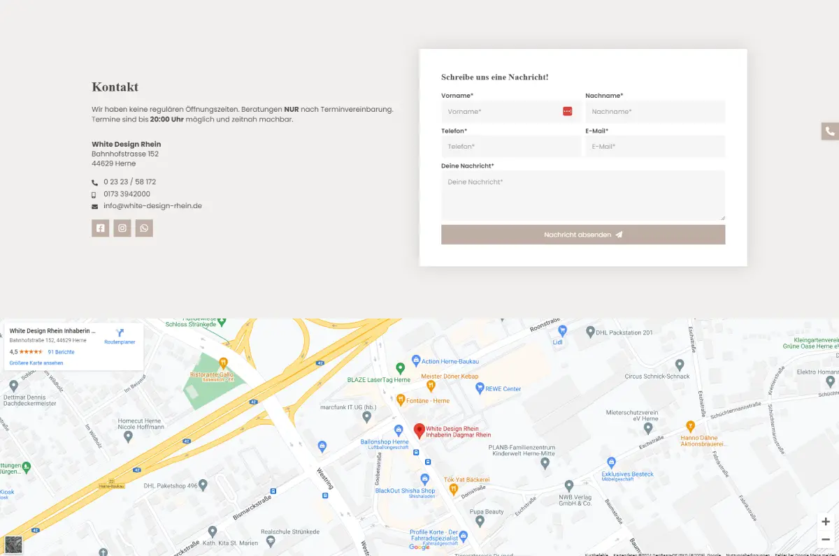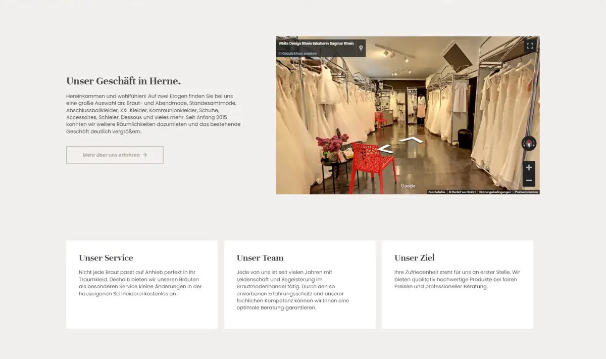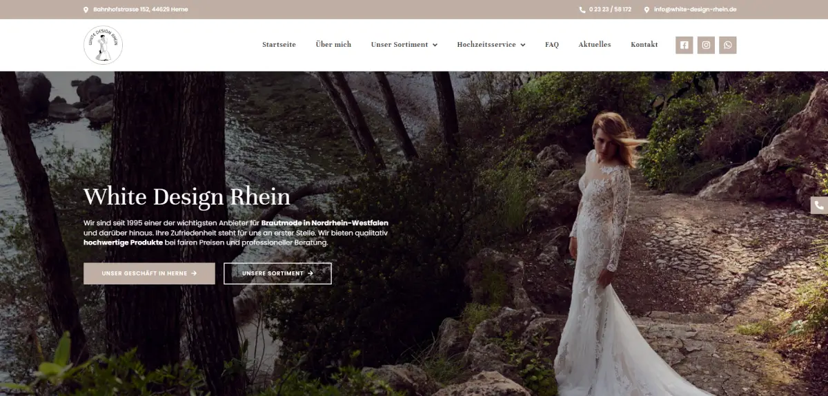 White Design Rhein ist das führende Brautmodengeschäft in Herne, das sich durch eine exklusive Auswahl an Braut- und Abendmode auszeichnet. Die Webseite, realisiert mit WordPress und Elementor, zeigt auch bei kleineren Projekten, wie effektiv und elegant eine Online-Präsenz gestaltet sein kann. Das übersichtliche und stilvolle Design der Seite spiegelt die Eleganz und den hohen Anspruch der Brautmodenkollektionen wider, die White Design Rhein anbietet.